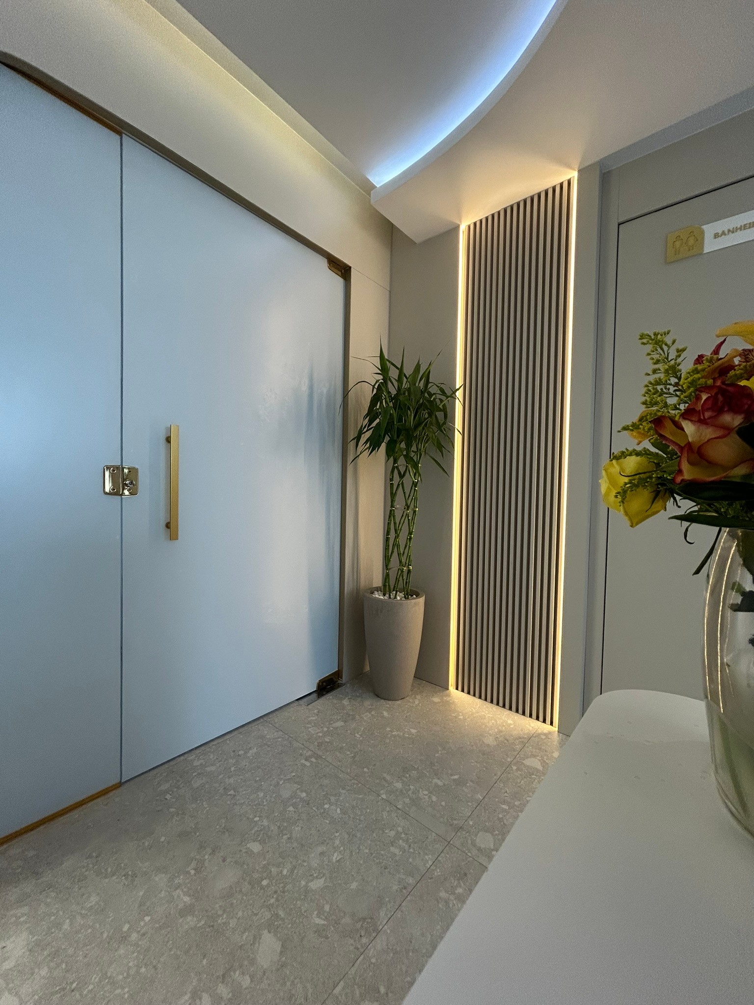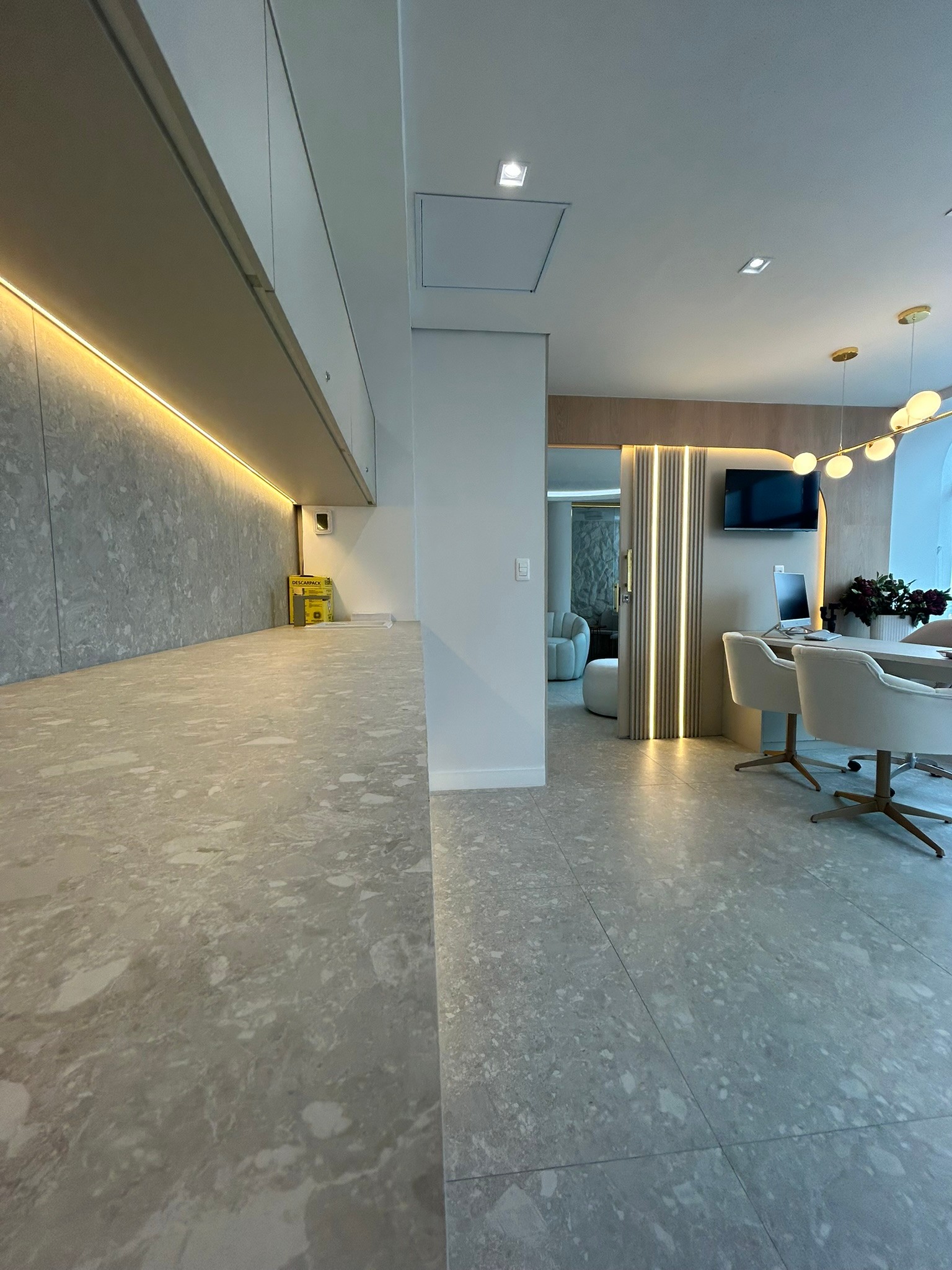 A Clínica Raquel Moreira foi um projeto desafiador e inspirador, que representa bem o padrão de excelência da SOLUPROM Engenharia. Em apenas três meses, realizamos uma reforma completa de 90m² — das demolições aos acabamentos mais finos, incluindo mobiliários sob medida. As obras ocorreram exclusivamente no período noturno, das 22h às 6h, garantindo total discrição e respeito à rotina do condomínio. O resultado é um ambiente sofisticado, funcional e acolhedor, que traduz a identidade da marca e reforça nossa especialização em clínicas de alto padrão.